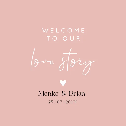 Bruiloftsbord roze welcome to our love story