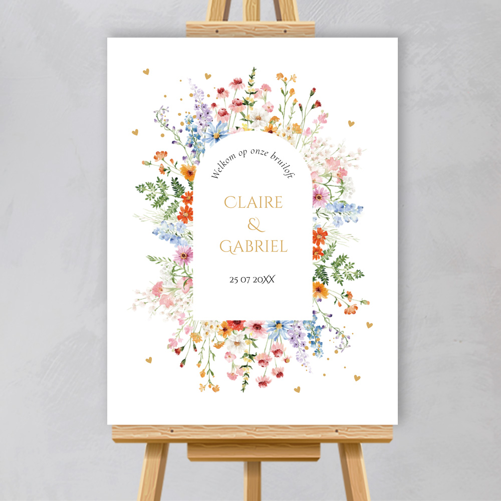 Verwelkom jullie gasten met een prachtig en persoonlijk welkomstbord. Pas gemakkelijk het design zelf aan en ga aan de slag met onze editor. Mocht je er niet uitkomen, neem dan gerust contact met ons op. Wij zijn er om je te helpen. Specificaties: • Formaat: 55 x 73 cm • Materiaal: forex 5 mm dik • Weersbestendig