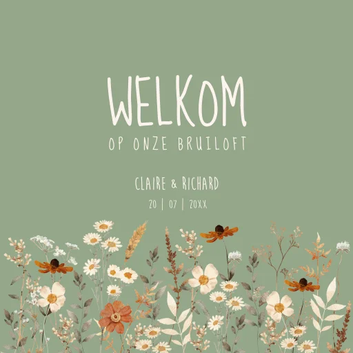 Bruiloftsbord groen beige veldbloemen