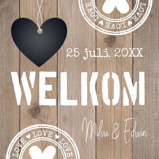 Bruiloftsbord houtlook hartje stempels 70x70 cm