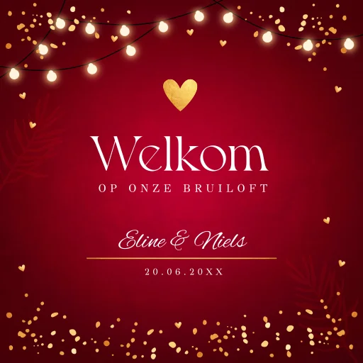 Bruiloftsbord rood kerst lampjes goudlook 70x70 cm
