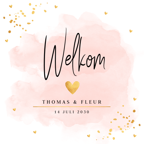 Bruiloftsbord roze watercolour goudlook confetti 70x70 cm
