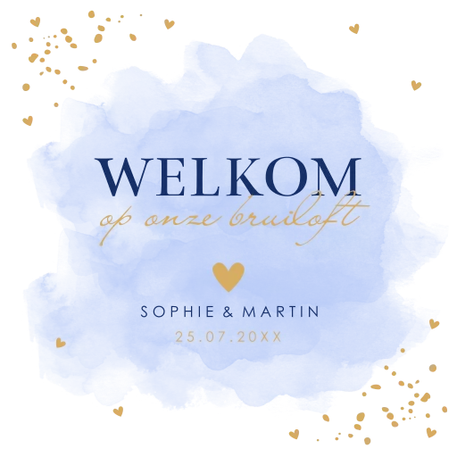 Bruiloftsbord watercolour blauw hartjes