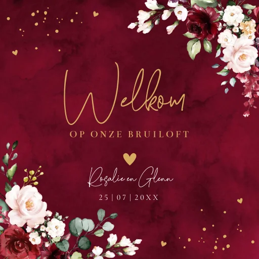 Verwelkom jullie gasten met een prachtig en persoonlijk welkomstbord. Pas gemakkelijk het design zelf aan en ga aan de slag met onze editor. Mocht je er niet uitkomen, neem dan gerust contact met ons op. Wij zijn er om je te helpen. Specificaties: • Formaat: 70 x 70 cm • Materiaal: forex 5 mm dik • Weersbestendig