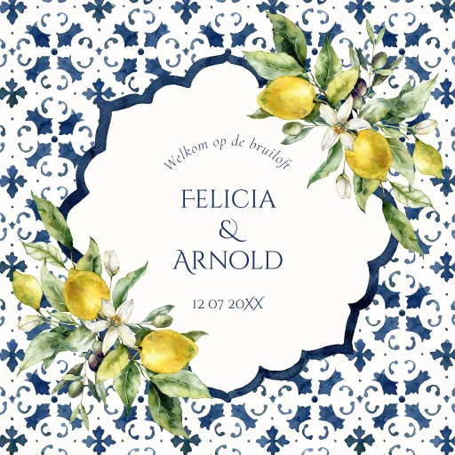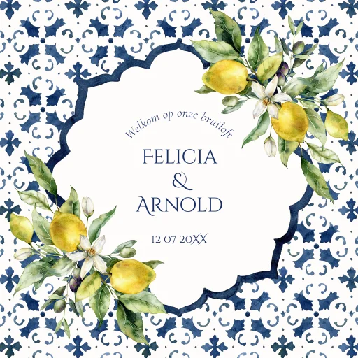 Verwelkom jullie gasten met een prachtig en persoonlijk welkomstbord. Pas gemakkelijk het design zelf aan en ga aan de slag met onze editor. Mocht je er niet uitkomen, neem dan gerust contact met ons op. Wij zijn er om je te helpen. Specificaties: • Formaat: 70 x 70 cm • Materiaal: forex 5 mm dik • Weersbestendig
