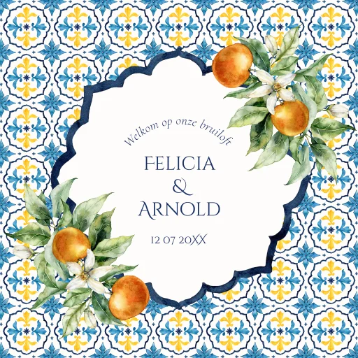 Verwelkom jullie gasten met een prachtig en persoonlijk welkomstbord. Pas gemakkelijk het design zelf aan en ga aan de slag met onze editor. Mocht je er niet uitkomen, neem dan gerust contact met ons op. Wij zijn er om je te helpen. Specificaties: • Formaat: 70 x 70 cm • Materiaal: forex 5 mm dik • Weersbestendig