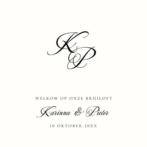 Bruiloftsbord wit initialen naam sierlijke letters