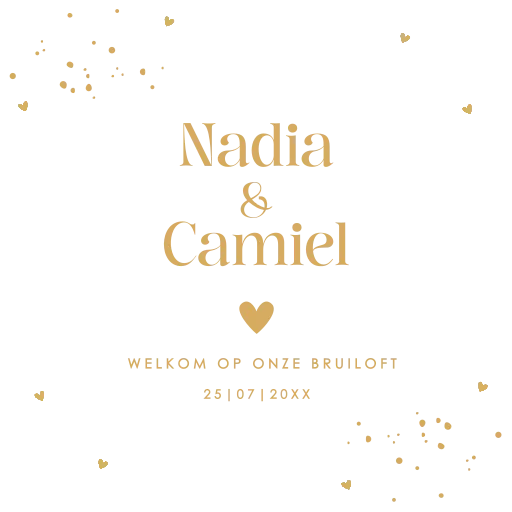 Verwelkom jullie gasten met een persoonlijk welkomstbord. Pas gemakkelijk het design zelf aan en ga aan de slag met onze editor. Mocht je er niet uitkomen, neem dan gerust contact met ons op. Wij zijn er om je te helpen. Specificaties: • Formaat: 70 x 70 cm • Materiaal: forex 5 mm dik • Weersbestendig