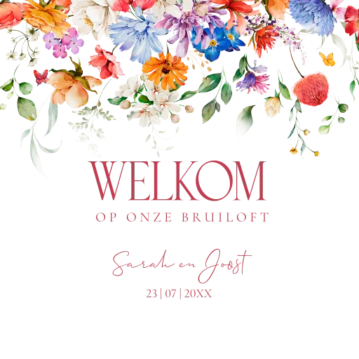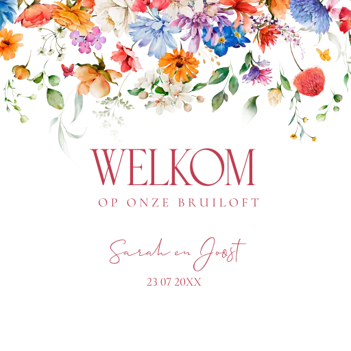 Verwelkom jullie gasten met een prachtig en persoonlijk welkomstbord. Pas gemakkelijk het design zelf aan en ga aan de slag met onze editor. Mocht je er niet uitkomen, neem dan gerust contact met ons op. Wij zijn er om je te helpen. Specificaties: • Formaat: 70 x 70 cm • Materiaal: forex 5 mm dik • Weersbestendig