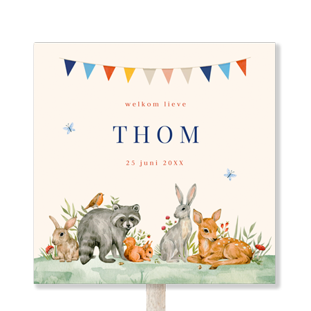 Tuinbord bosdieren vlaggetjes | 70x70 cm