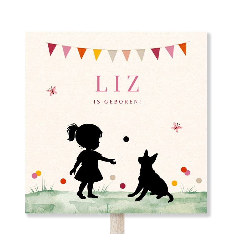 Tuinbord geboortekaartje silhouet meisje en hondje | 70x70 cm