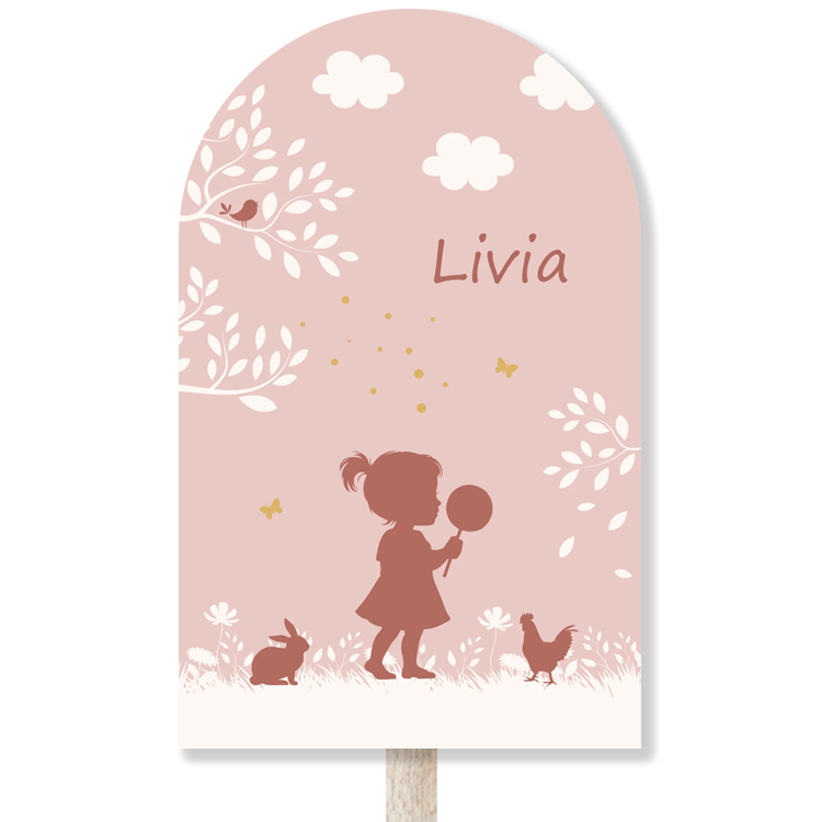 Tuinbord in boog vorm met silhouet meisje roze omringd door boom, dieren en bloemen. Pas gemakkelijk het design zelf aan en ga aan de slag met onze editor. Mocht je er niet uitkomen, neem dan gerust contact met ons op. Wij zijn er om je te helpen. Specificaties: • Formaat: 50 x 80 cm • Materiaal: forex 5 mm dik • Weersbestendig