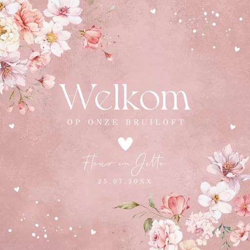 Verwelkom jullie gasten met een prachtig en persoonlijk welkomstbord. Pas gemakkelijk het design zelf aan en ga aan de slag met onze editor. Mocht je er niet uitkomen, neem dan gerust contact met ons op. Wij zijn er om je te helpen. Specificaties: • Formaat: 70 x 70 cm • Materiaal: forex 5 mm dik • Weersbestendig