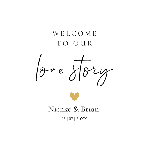 Welkomstbord bruiloft wit typografie welcome to our love story