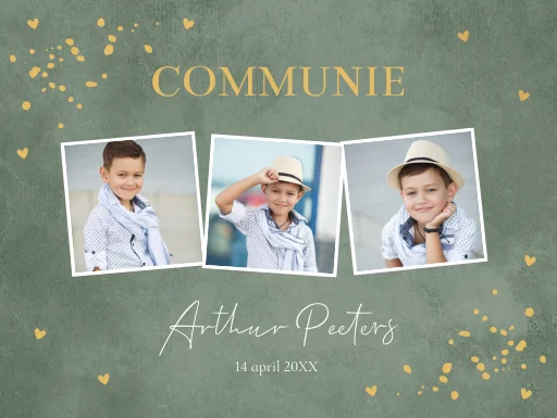 Welkomstbord communie jongen groen fotocollage