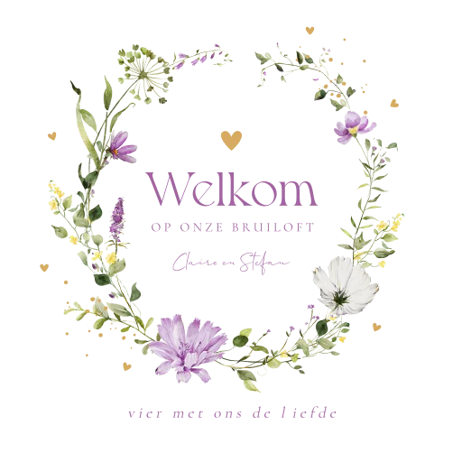 Verwelkom jullie gasten met een prachtig en persoonlijk welkomstbord in de stijl van jullie trouwkaart. Pas gemakkelijk het design zelf aan en ga aan de slag met onze editor. Mocht je er niet uitkomen, neem dan gerust contact met ons op. Wij zijn er om je te helpen. Specificaties: • Formaat: 70 x 70 cm • Materiaal: forex 5 mm dik • Weersbestendig